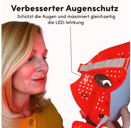 Die ELVA MASKE ist mit speziellen Augenschildern ausgestattet, die Ihre Augen vor intensiver LED-Lichtbelastung schützen. Dieses zusätzliche Feature sorgt für maximale Sicherheit und Komfort bei jeder Anwendung.
